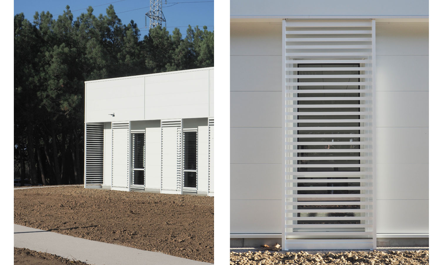 – Le volume du laboratoire et des locaux techniques, marque l’accès arrière du bâtiment. Il se loge contre la tour de traitement et n’est pas visible depuis l’espace public.