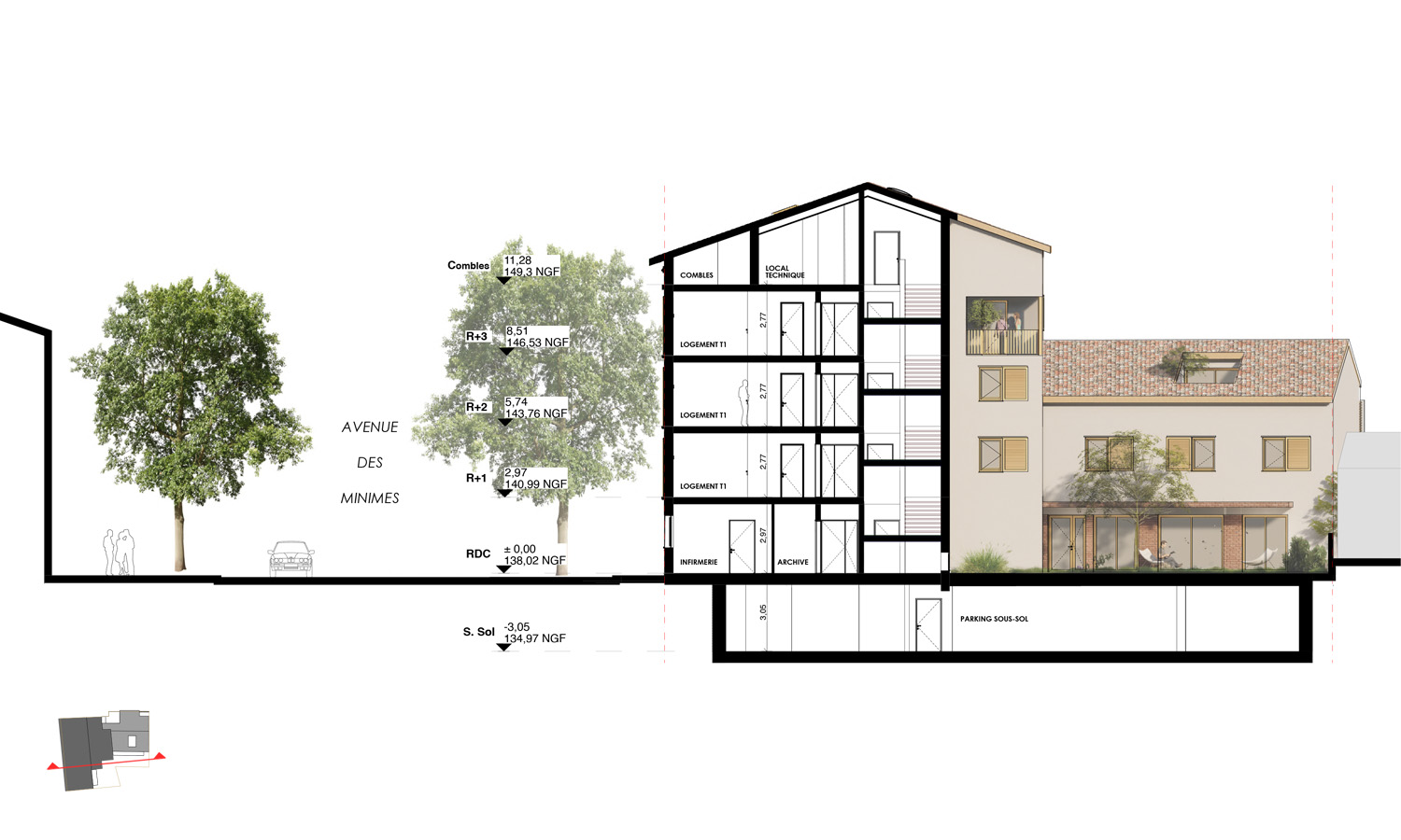 A l’image du quartier des Minimes, la recherche d’urbanité à échelle humaine, de compacité, d’intégration a guidé la conception du projet, avec trois objectifs majeurs :