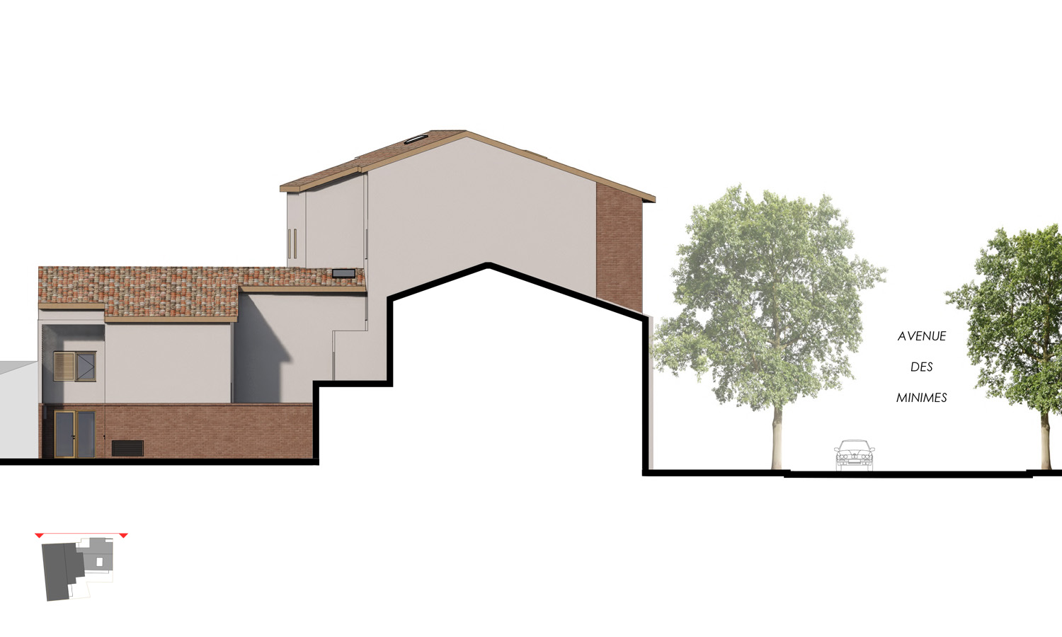 Cette opération consiste à regrouper deux lieux d’hébergement existants devenus trop vétustes ; au sein d’un site dans le quartier des Minimes à Toulouse. Ce nouveau foyer « Le Petit Bois » est destiné à l’accueil des personnes travaillant en ESAT. La principale fonction de cette structure est l’hébergement de personne en apprentissage de l’autonomie à travers une activité professionnelle mais également par des tâches quotidiennes de la vie notamment dans l’acte d’habiter.