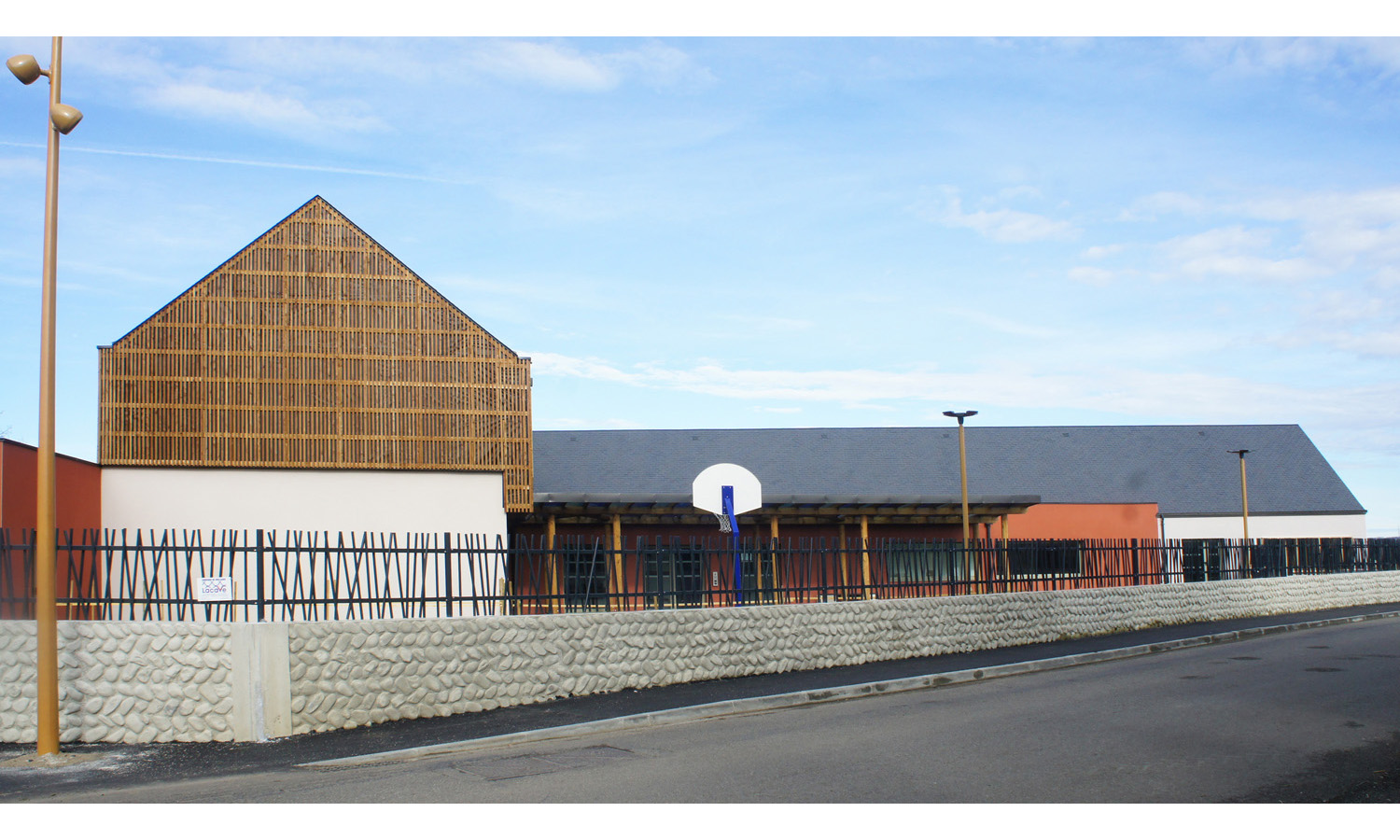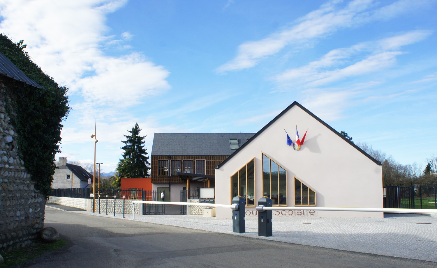 De part sa situation stratégique en entrée de village, à l’Est de la commune, une attention particulière a été portée quant à l’implantation, le gabarit et l’Envergure de cet équipement. Son écriture architecturale se veut en cohérence avec son statut d’architecture publique tout en s’inscrivant harmonieusement au cadre traditionnel existant.