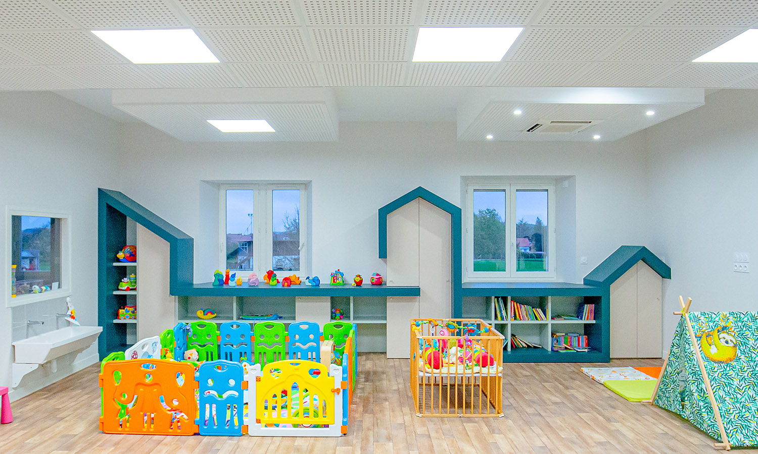 Pôle enfance et Jeunesse à Rabastens-de-Bigorre enseignement et petite enfance Lieu Rabastens-de-Bigorre (65)Maître d'ouvrage Communauté de Communes Adour MadiranÉquipe de maîtrise d'œuvre Goubert & Landes, AEC Expertises, SETES ingénierieCalendrier 2020Coût des travaux 1 518 000 € HTSurface de plancher 1 831 m2 Réhabilitation d’un ancien EHPAD en logements adaptés et création d’un pôle petite enfance et jeunesse, avec mise en accessibilité et mise en conformité.